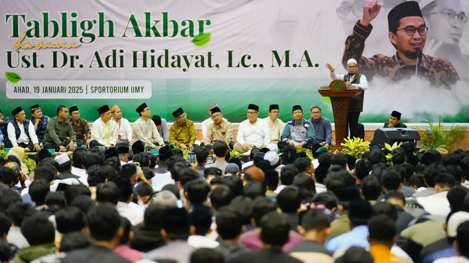 Menjadi kontribusi dalam menyebarluaskan visi Islam berkemajuan yang dikedepankan oleh Muhammadiyah, Universitas Muhammadiyah Yogyakarta (UMY) kembali menggelar Tabligh Akbar bersama Ustadz Adi Hidayat, M.A., Ph.D. Dilaksanakan pada Minggu pagi (19/1) di Sportorium UMY, kajian ini merupakan bentuk kerja sama antara UMY dengan Majelis Tabligh PP Muhammadiyah yang dihadiri oleh ribuan mahasiswa dan masyarakat umum.